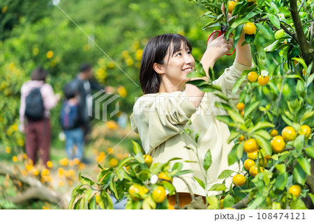 蜜柑狩りをする女性 休日に旅行