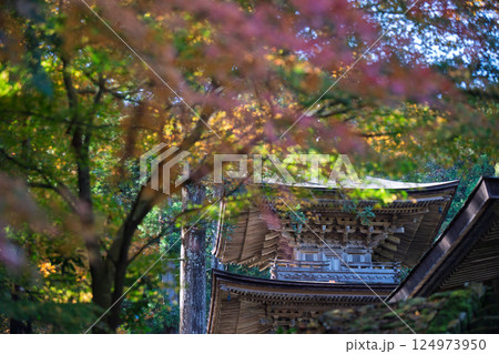 福井県若狭小浜市の紅葉まっさかりの明通寺を撮影