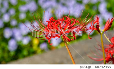 ホテイアオイバックに咲く満開の彼岸花@本薬師寺跡、奈良
