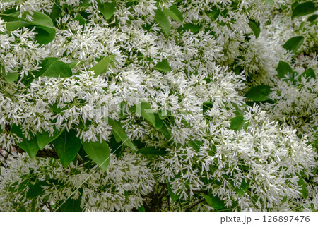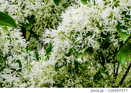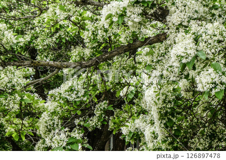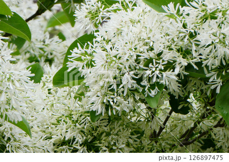 ひも状の細い花びらが雪のよう咲くヒトツバタゴの木の花 あまりにも珍しいのでナンジャモンジャの木になっ