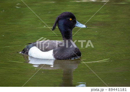 The tufted duck, Aythya fuligula, a diving duck swimming on a Lake at Munich