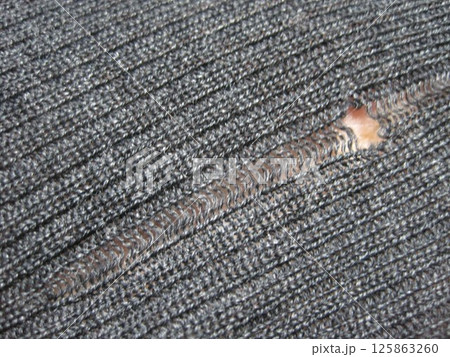 虫に食われた穴から伝線していったウールのセーター