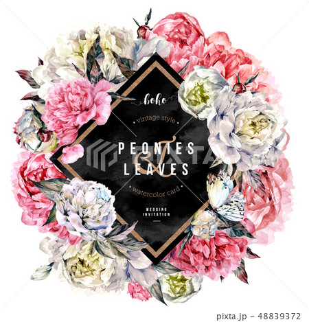 Peach peony bouquet watercolor hand drawn painting. Chinese national symbol illustration. Realistic flower clipart, floral arrangement for card design, wedding invitation, prints, textile, packing