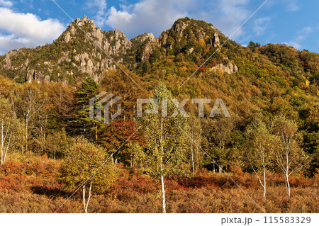 紅葉と岩山