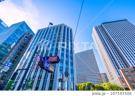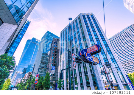日本の東京都市景観 虎ノ門駅や「虎ノ門」交差点前のビルなどを望む(奥は文科省方向)
