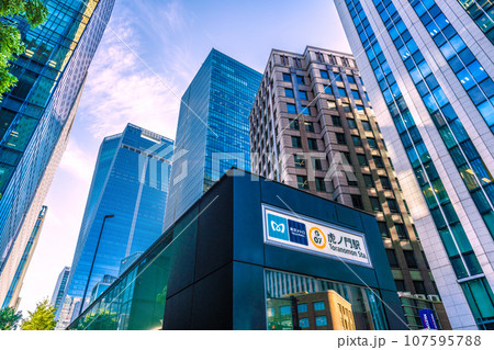 日本の東京都市景観 「虎ノ門」の交差点前にある虎ノ門駅(出入口3)