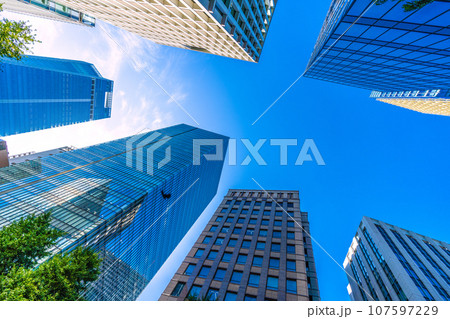 日本の東京都市景観 虎ノ門駅(出入口)前からビル群などを望む