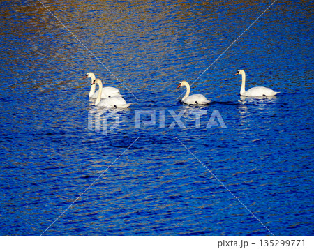 朝の澄んだ空気の中の白鳥の姿が美しい阿賀野の瓢湖