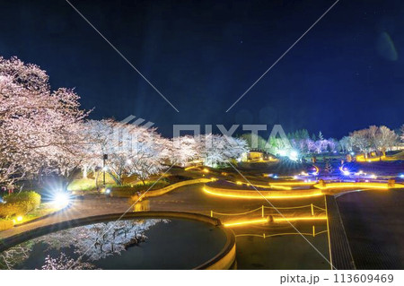 国営みちのく湖畔公園 夜桜のライトアップ「みちのく花明かり」 宮城県川崎町