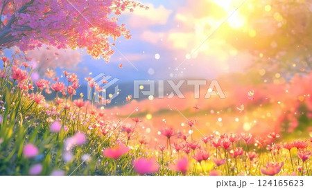 春の小川と柔らかな光 春の日差しが優しく降り注ぐ小川沿いの風景