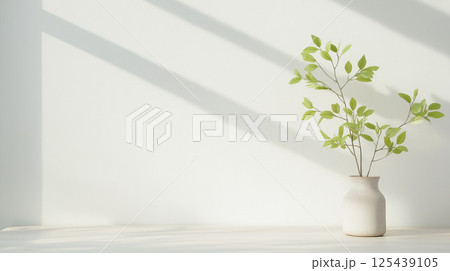 A modern office interior featuring a large blank white wall, clean flooring and floor-to-ceiling windows.