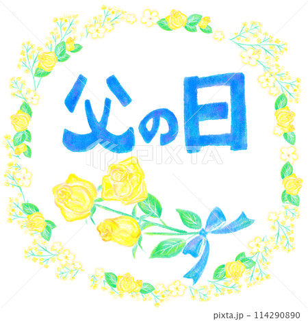 父の日_FathersDay__手描き風文字と黄色い薔薇と花の枠