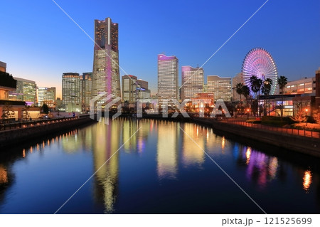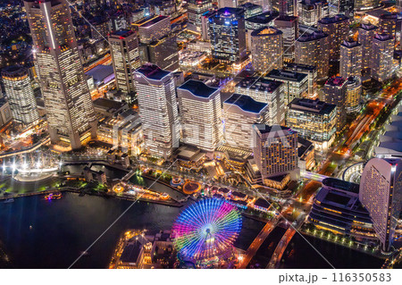 (横浜夜景)みなとみらいのマジックアワーの俯瞰
