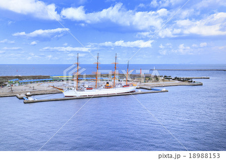 富山県射水市 富山新港 みなとオアシス海王丸パークに係留される帆船海王丸