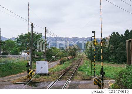 南阿蘇鉄道の見晴台駅から見た軌道と列車 (熊本県阿蘇郡南阿蘇村)
