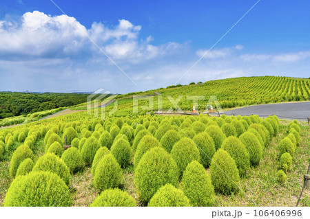 夏のひたち海浜公園 青々としたたくさんのコキア 茨城県ひたちなか市