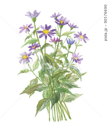 紫色の都忘れ 水彩イラスト