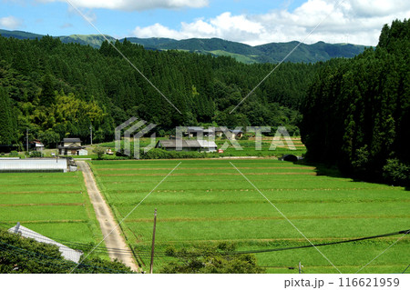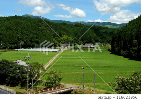 熊本県阿蘇郡小国町 旧国鉄宮原線遊歩道 沿線の風景 幸野川橋梁からの田園風景