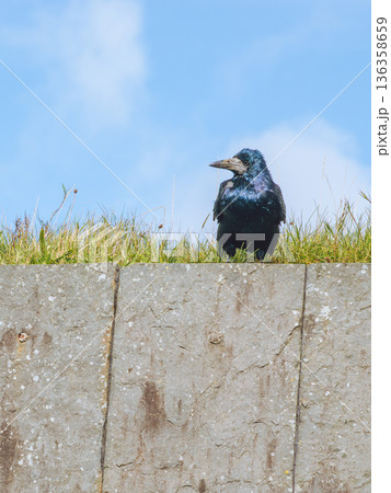 A tame Rook (Corvus frugilegus) at the Cliffs of Moher, County Clare in Ireland