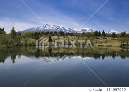 松ヶ峯の池に映る美しい妙高山 新潟県上越市