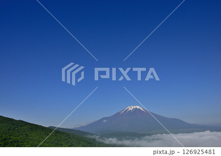 丹沢の鉄砲木ノ頭(明神山)山頂より望む初夏の頃の富士山 コピースペース
