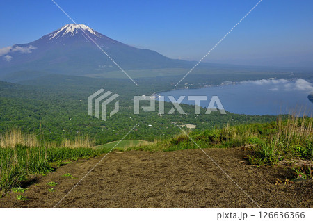 丹沢の鉄砲木ノ頭(明神山)山頂より望む初夏の頃の富士山と山中湖
