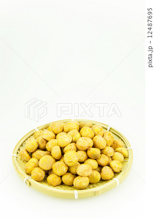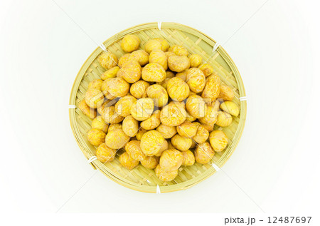 小鉢に盛った、オーガニックの、むき甘栗【白背景・切り抜き】
