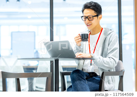 ビジネスマン、オフィス、オフィスカジュアル、デスク