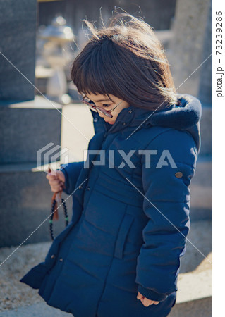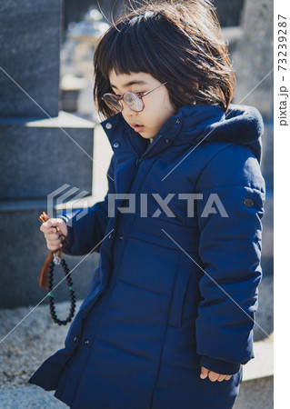 墓参りをする女の子 悲しい子供 イメージ