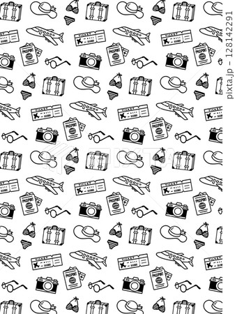 かわいい手描きの旅行イメージ背景モノクロパターン