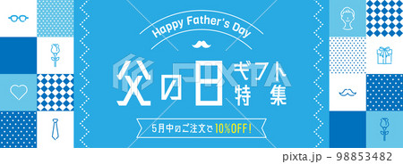 父の日 広告テンプレート/アイコン×格子模様のフレーム(バナー向け横長)