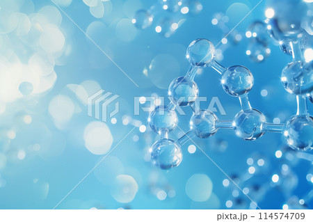 Selective focus of 3D rendering of carbon molecular structure model background for science, technology and research in sports or medical industries.