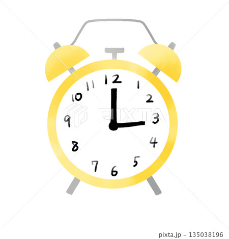 水彩風の黄色い目覚まし時計イラスト 朝の時間やスケジュールの素材