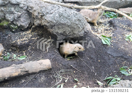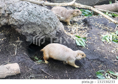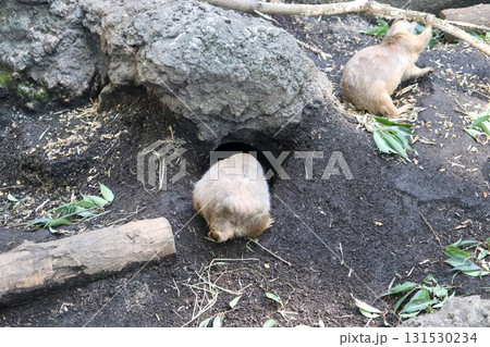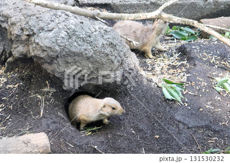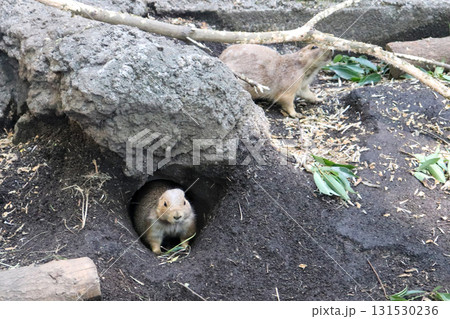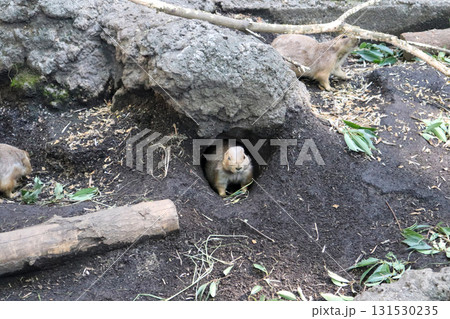 巣穴から顔を出すプレイリードッグ