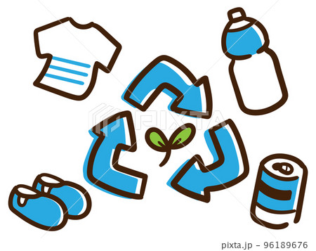 一度使ったものや資源のリサイクルを推奨するデフォルメイラスト
