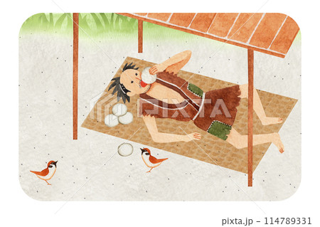 日本昔話 ものぐさ太郎 水彩 イラスト