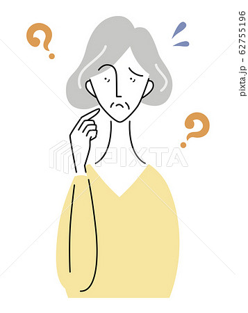 認知症 記憶障害 もの忘れに困惑する高齢女性 シンプル