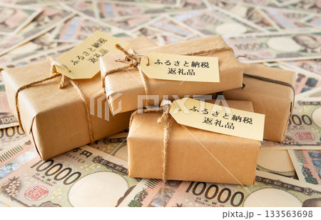 ふるさと納税返礼品と一万円札 ふるさと納税 税金 寄付金