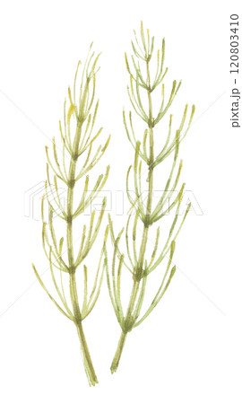 水彩で描いた乾燥スギナ