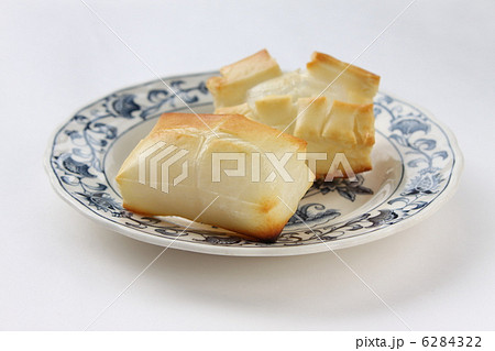 白背景に置かれた焼き餅のクローズアップの俯瞰