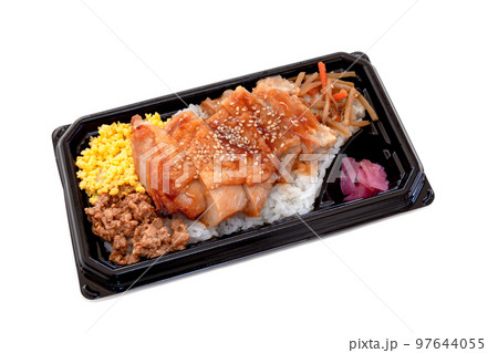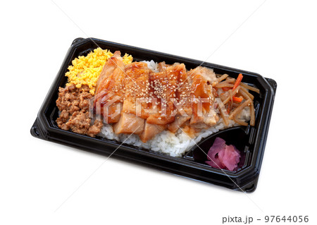 持ち帰り、鶏の照り焼き弁当【白背景・切り抜き】