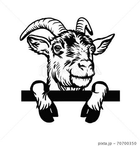Horned goat - Cheeky Goat peeking out - face head isolated on white - vector stock