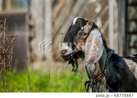 Portrait of a goat on a farm in the village.
