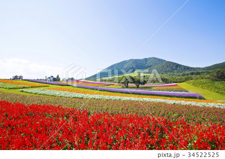 美しい花畑広がる やくらいガーデン快晴の日 宮城県
