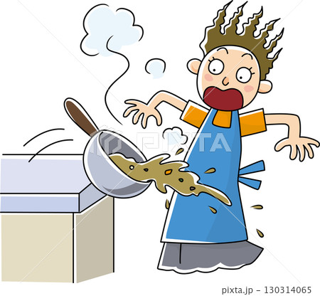 料理中にうっかり熱いなべを落としてしまう