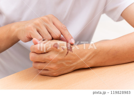 Keloid scar (Hypertrophic Scar) on man hand skin after accident