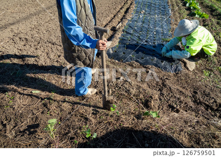 (群馬県)嬬恋村キャベツ畑 苗の植え付け準備