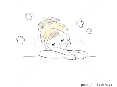 リラックスした表情でお風呂に入っている若い女性の上半身イラスト