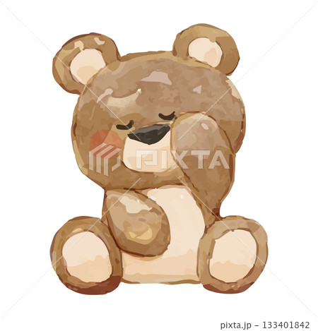 ふんわりベア日和|眠そうに目をこする水彩テディベア
