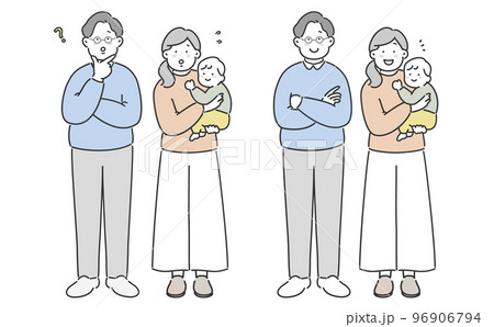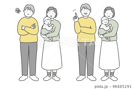 夫婦 家族 困った表情と笑顔の表情 全身イラスト素材